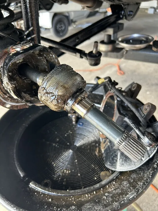 また、フロント左ハブ・キングピン部分よりオイル漏れが見つかりキングピン、ベアリング、オイルシール、ロックナットなどを交換しました。