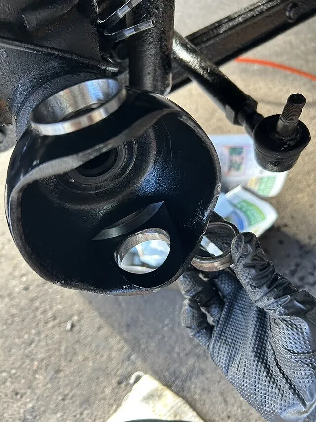 経年劣化や摩擦で細くなったキングピンとベアリングにすき間が空くとベアリングのガタつきにつながります。